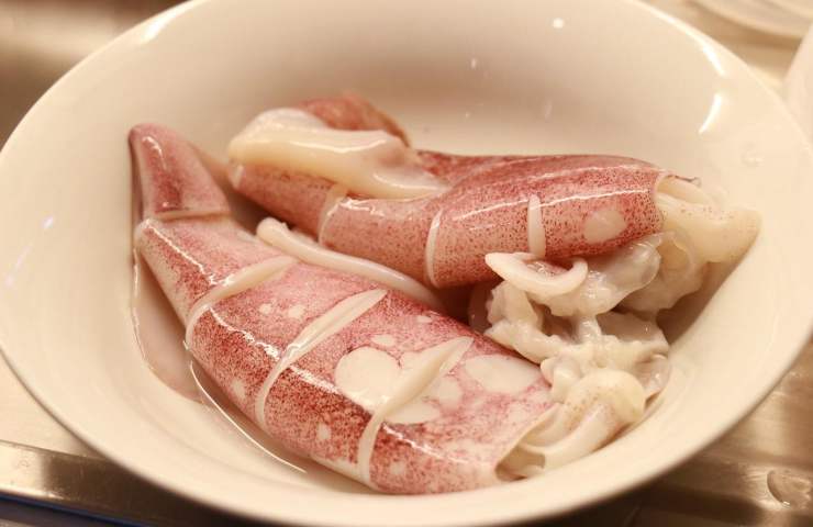 Per preparare i vostri calamari gratinati al forno dedicatevi innanzitutto alla pulizia accurata del mollusco lavandolo con abbondante acqua.