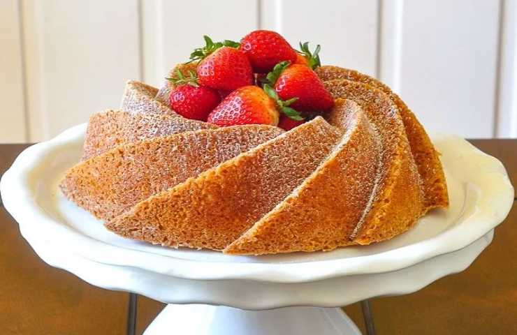 Oltre a non avere glutine è anche senza burro che viene egregiamente sostituito dall’olio di semi per una maggior leggerezza.Ipocalorica e buonissima questa ciambella ha le fragole indiscusse protagoniste che ne determinano l’aroma e danno anche un tocco di colore tendente al rosa che è piacevole da vedere.