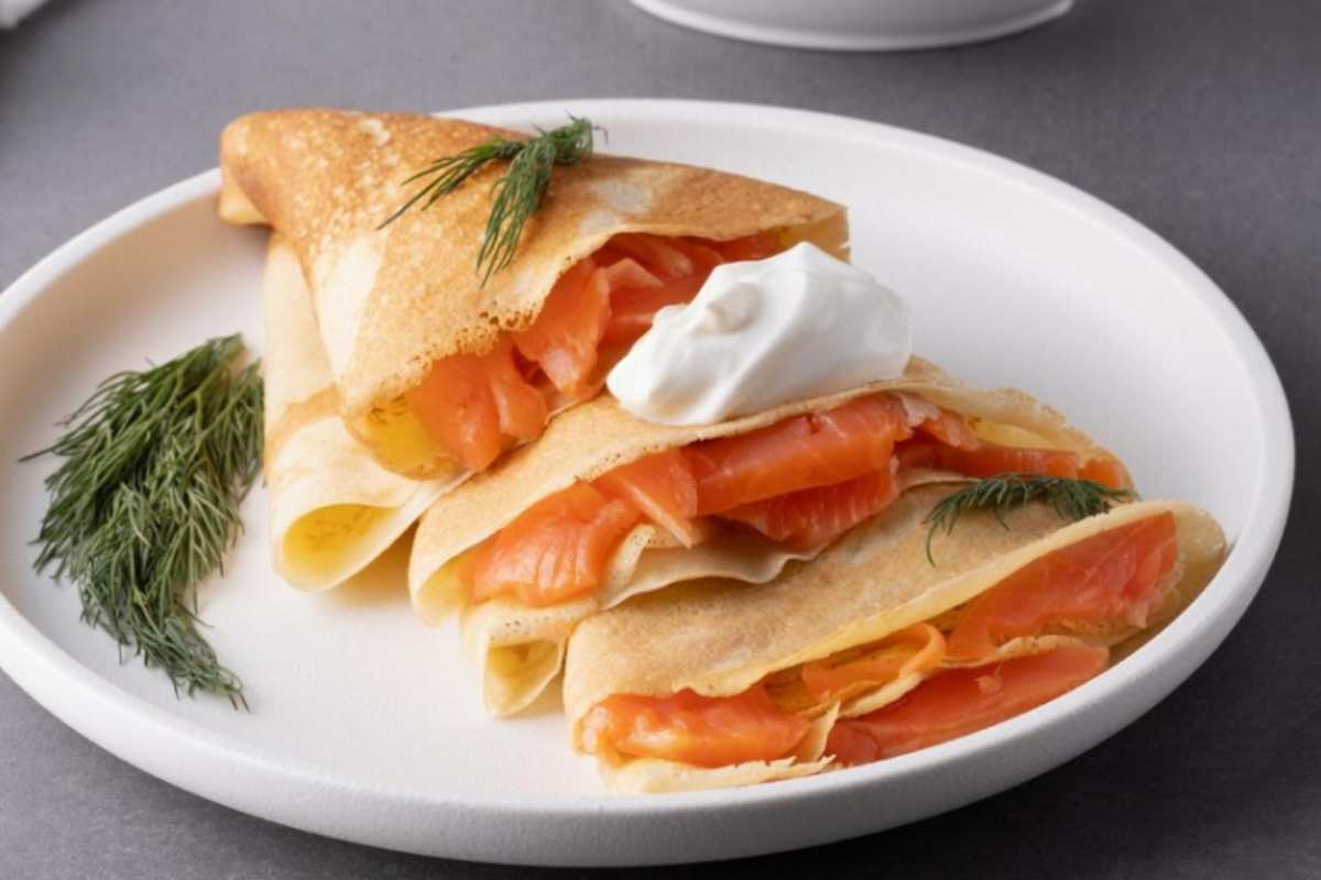 - Per quanto concerne il ripieno, puoi letteralmente sbizzarrirti. Se dovessi dirti qual è quello che preferisco, ti direi senza dubbio una farcia a base di salmone affumicato, formaggio squacquerone e rucola: così facendo, la mia crêpes salata è fresca al palato, oltre che estremamente saporita.