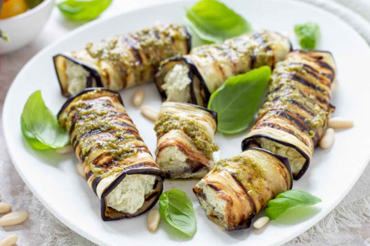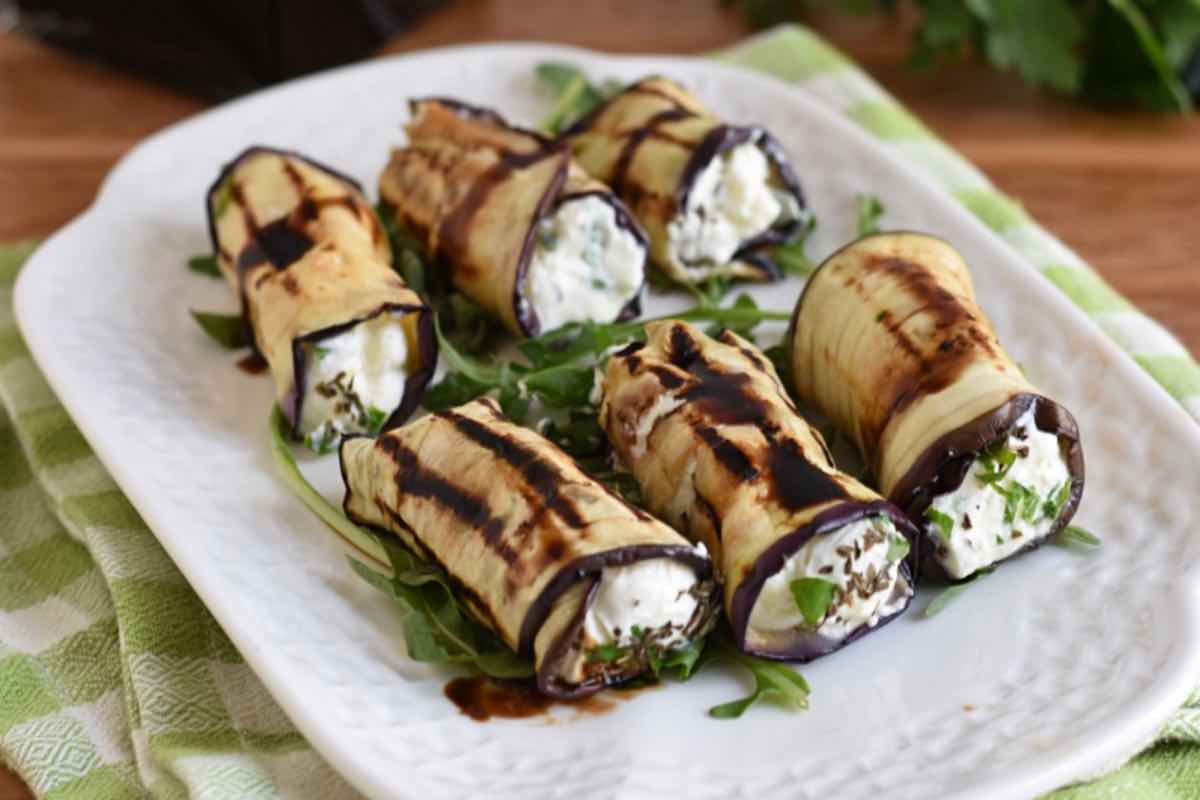 Involtini di melanzane ripieni di ricotta ed erbe aromatiche, un piatto fresco e sano perfetto per l’estate