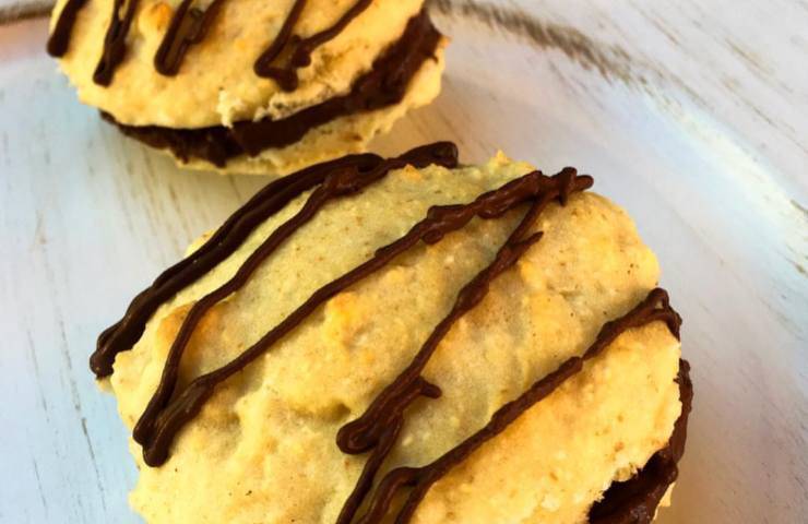 Una volta terminata la cottura sfornare e coprire poi con la pellicola trasparente a contatto e lasciare raffreddare. Usando poi un coppapasta formare dei dischi di pari numero e farcirne metà con la crema e coprire con l’altro disco. Sistemarli poi su una grata e ricoprire con il cioccolato fuso. Far raffreddare ancora e poi riporre in frigo per 3 ore prima di gustarli.