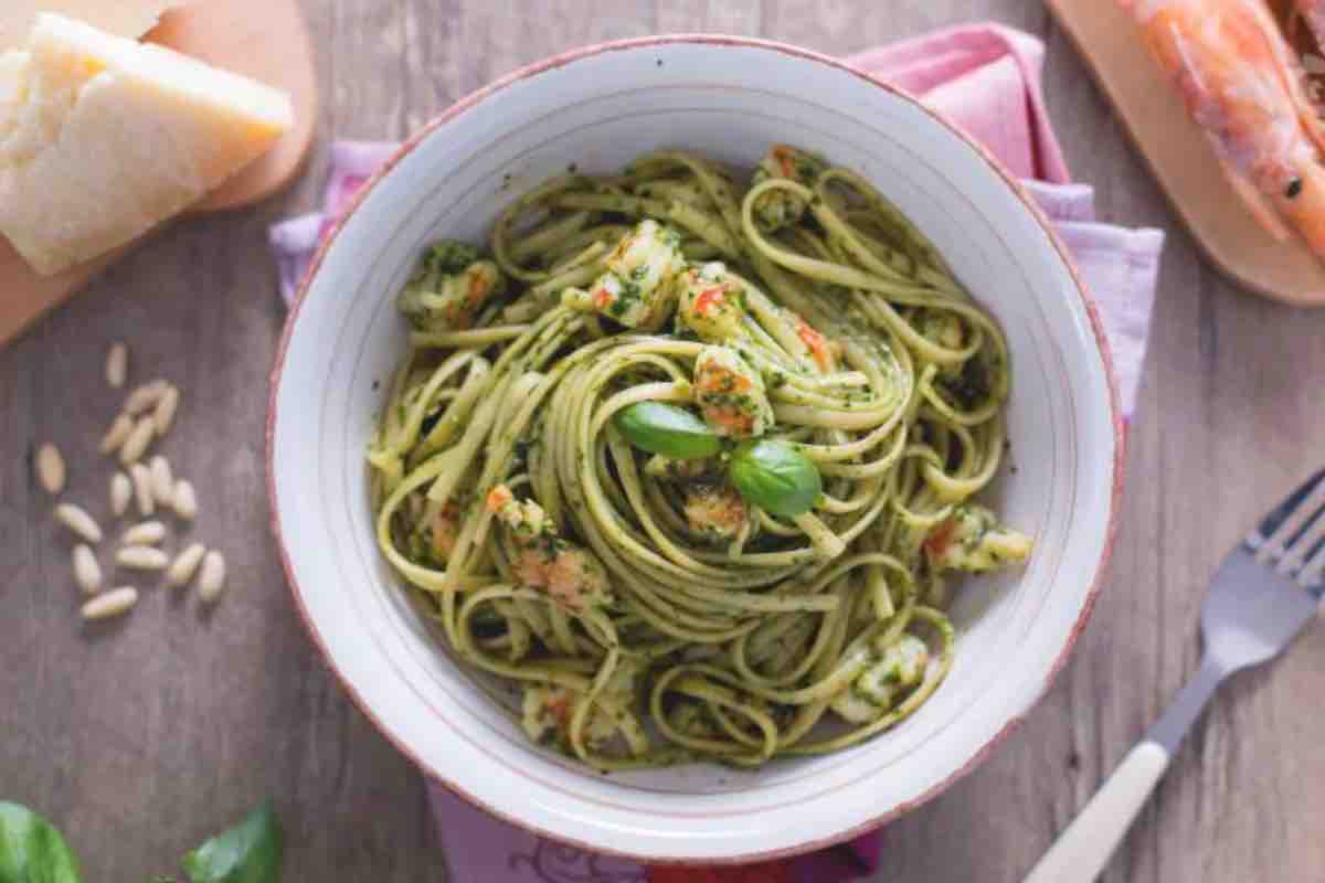 Pasta sfiziosa senza glutine con pesto di pistacchi e gamberi, una ricetta perfetta per una cena speciale
