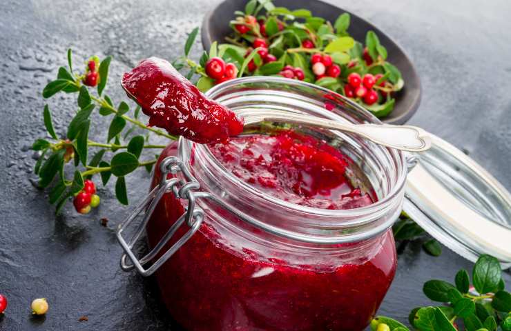 Livellatelo con una spatola e versate la marmellata di mirtilli rossi avendo cura di stenderla per bene.