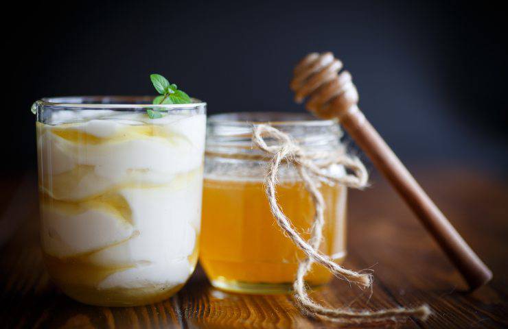 Innanzitutto munitevi di una ciotola capiente e iniziate a mescolare il miele insieme allo yogurt greco.