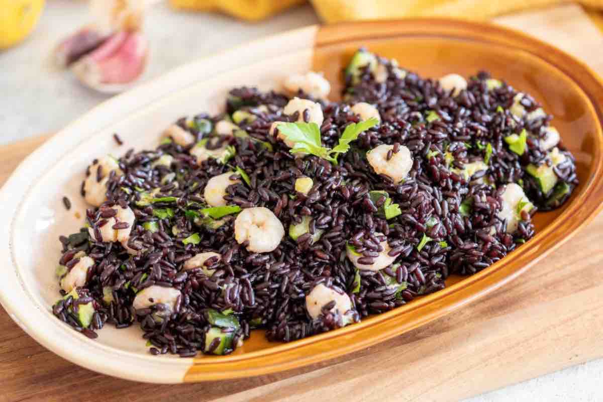 Riso venere con zucchine e gamberi, scopri la ricetta perfetta per l’estate, gustosa, proteica e saziante