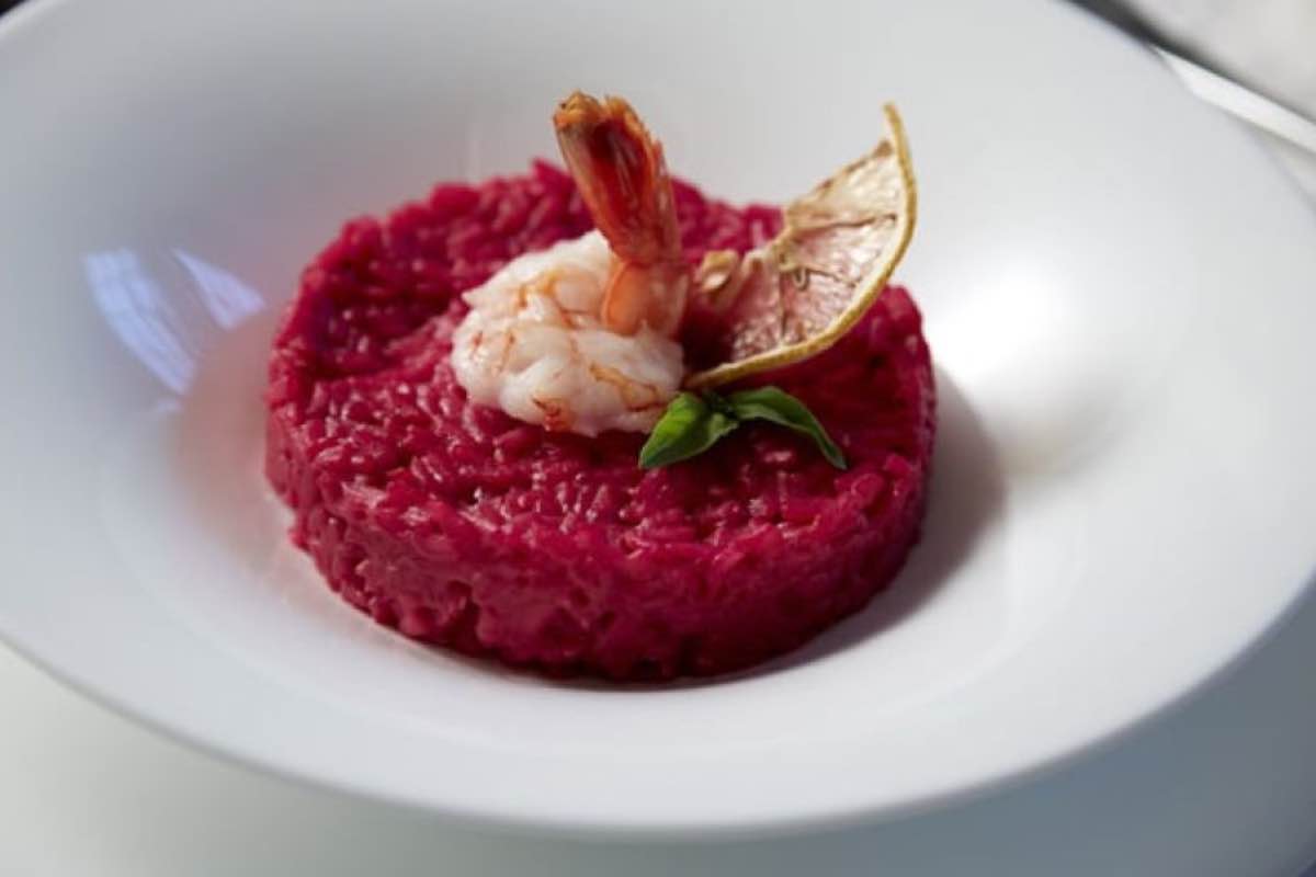 Risotto alla barbabietola con gamberi, un piatto originale