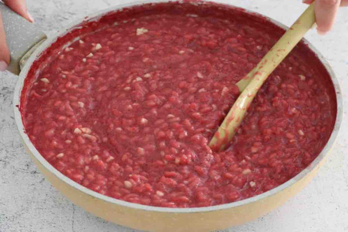 - Unite la crema di barbabietola e continuate la cottura del riso