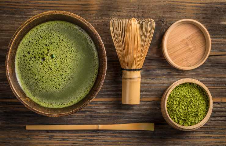 Il tè matcha, verde e molto pregiato, prodotto in Giappone, è caratterizzato da un colore verde intenso e da una polvere fine con un profumo delicato, è noto per essere ricco di antiossidanti, soprattutto polifenoli e ha anche una funzione disintossicante, drenante e purificante.